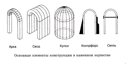На Востоке много веков назад появилась простая строительная конструкция – арка: две опоры и перекинутая между ними каменная дуга. Если несколько арок поставить вплотную друг за другом, образуются две стены и свод. А если арку повернуть вокруг своей оси, получится купол. Арку, свод и купол у восточных народов позаимствовали древние римляне. От них эти архитектурные формы стали известны византийцам, которые и привезли "новинку" на Русь. Стена, арка, купол и свод стали основой конструкций каменных сооружений на Руси – дворцов, храмов, крепостей.