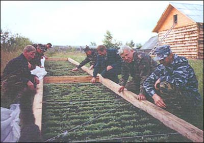 Ветераны лесхоза, слева направо: первый ряд - А.А. Большаков, Н.Н. Собанин, Н.В. Мишенев; второй ряд - С.Н. Плотников, Н.М. Юденко, Н.И. Селяков, А.Н. Берсенев, В.П. Второв.
