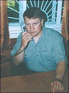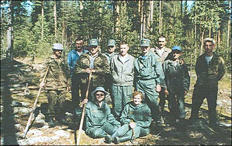 ![]() Главный лесничий В.А. Черемухин на фоне лесных культур (посадка сосны 1988 г.) |