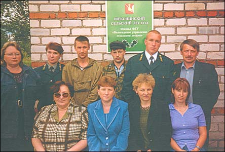 Коллектив сельлесхоза: помощник лесничего Центрального лесничества СМ. Юркова, мастер леса Центрального лесничества И.В. Куванова, мастер леса Центрального лесничества С.А. Дудин, инженер по охране и защите леса С.А. Купцов, лесничий Шекснинского лесничества СИ. Кудряшов, директор лесхоза В.П. Федотовский, инженер лесного хозяйства Л.Н. Иванова, бухгалтер Г.Л. Вихарева, экономист СП. Литвинова, специалист отдела кадров А.В. Меньшикова |
