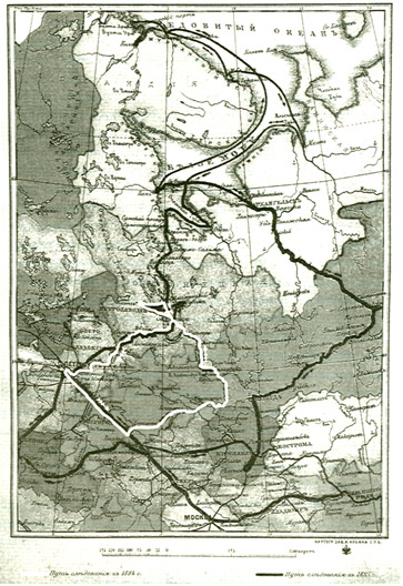 | Карта Северных губерний Европейской России с обозначением маршрута следования их Императорских Высочеств в 1884 и 1885 гг. |