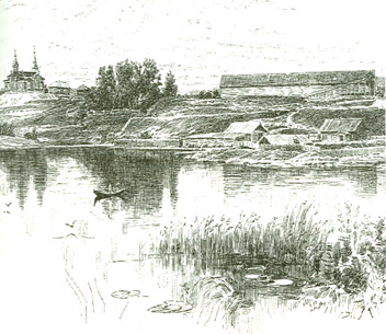 За день до прибытия в Холмогоры посетили мы обитель Сийскую, где томился долгие годы преследуемый Годуновым Филарет Никитич, впоследствии патриарх московский, отец молодого царя Михаила Феодоровича, без сомнения, одна из самых выдающихся личностей нашей истории; до заточения, говорит Костомаров, был он самым видным щеголем в Москве; можно представить себе, что вытерпел он в заточении, под надзором годуновских соглядатаев!