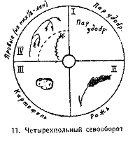 Можно поступить еще и так. Разделить всю пашню на четыре поля (рис. 11).