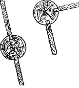 накладывается еще одно бревно, соединяющееся с обвязкою «в лапу». Чтобы обвязку не сорвало во время мочки со столбов, ее скрепляют с ними железными скобами.