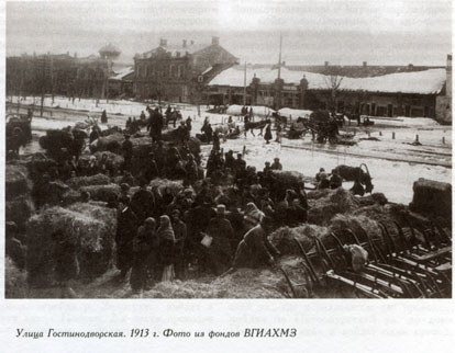 ...На одной из лучших городских площадей, так называемой Сенной, сосредоточена торговля привозимыми в город сеном, дровами и другими предметами, продаваемыми с возов, вследствие чего эта площадь при частой и продолжительной стоянке на ней значительного числа лошадей сильно загрязнена и пропитана нечистотами, вредное влияние которых слишком очевидно. Расположение торговли на означенной площади является неуместным и потому еще, что она находится в центре города перед лучшей гостиницей[1], помещением окружного суда[2] и окружена церквями[3], в коих благоговение церковной службы может нарушаться шумом торгующей толпы. Посему, как в видах безусловных требований гигиены, так и по чувству должного почитания святынь, признается необходимым освободить упомянутую площадь от производимой на ней торговли...