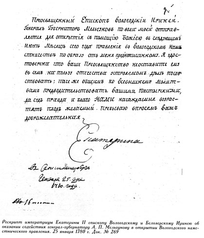 И во исполнение оного вашего превосходительства предписания предписано было частям, которые рапортами донесли, что находятся под надзором провиантского штата комиссионер 10-го класса Шейбак[1], отставной мануфактурной работы ученик Антон Ануфриев да в 1816 г. при предложении от бывшего гражданского губернатора Винтера присланы под надзор из Санкт-Петербурга коллежские регистраторы Игнатий Багинский[2] и Василий Чуровской. Первые три в закону противных поступках частями не замечены, а последний по ду[р]ному поведению отослан в уездный город Усть-Сысольск3 под надзор же; и более оных в городе Вологде не оказалось, о чем вашему превосходительству полиция имеет честь донести.