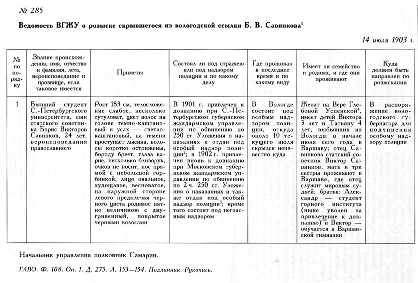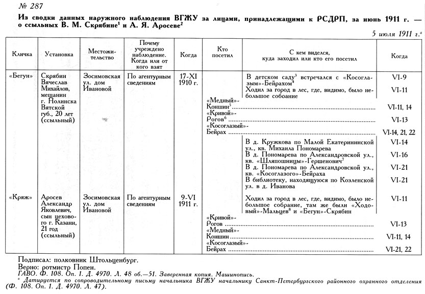 [a] Датируется по сопроводительному письму начальника ВГЖУ шефу отдельного корпуса жандармов (Ф. 108. On. 1. Д. 650. Л. 26).