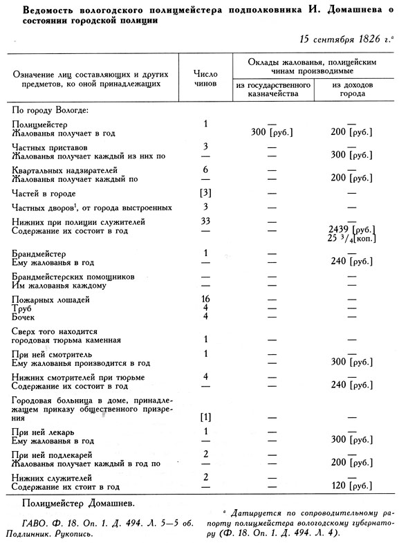 Из рапорта вологодского полицмейстера В. С. Четыркина[1] в губернское правление о необходимости увеличения штатов городской полиции