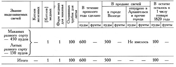 Ведомость вологодского купца М. Носкова о состоянии принадлежащего ему свечного завода за 1819 г.