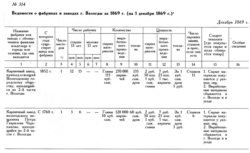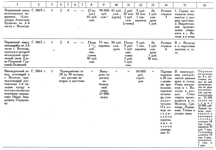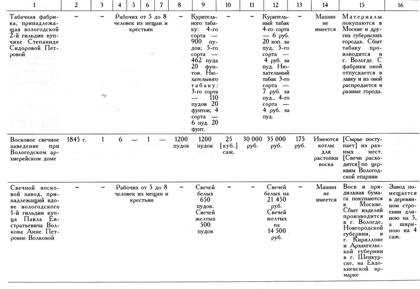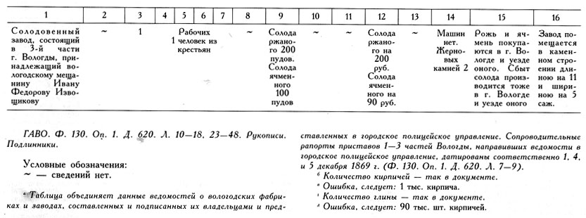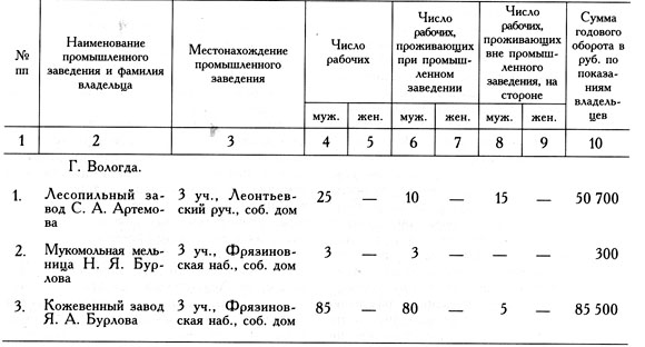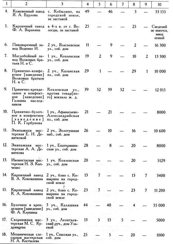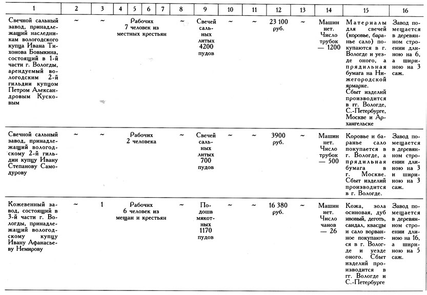 Из ведомости вологодского полицмейстера майора В. Т. Иванчина о заводах г. Вологды[1]