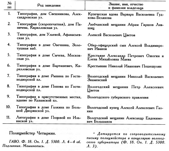 [a] Датируется по сопроводительному письму старшего фабричного инспектора Вологодской губернии начальнику Вологодского губернского жандармского управления (Ф. 108. On. 1. Д. 964. Л. 31).