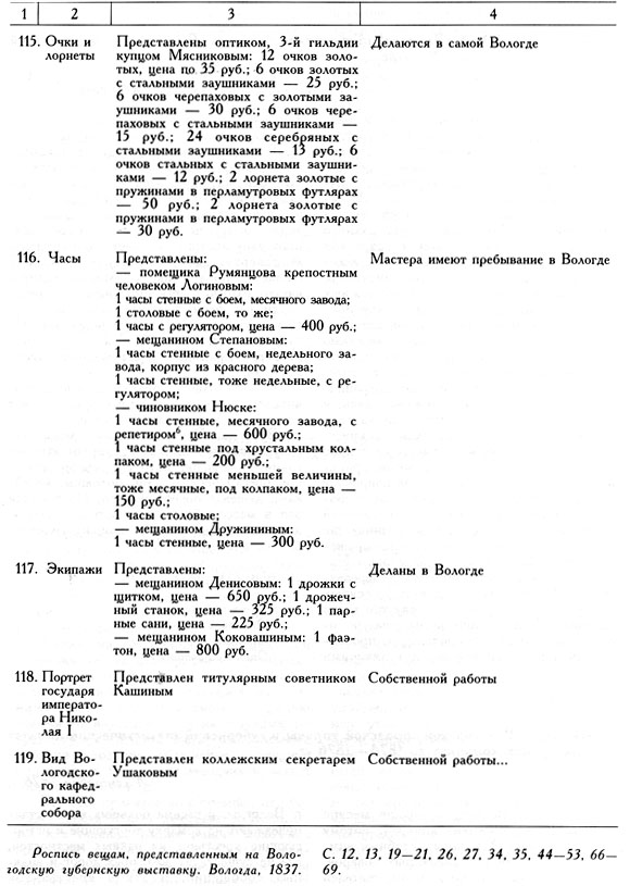 г. Вологды, в весьма больших количествах приезжают на ярмарку торгующие и неторгующие крестьяне из разных местностей, где не существует железных дорог и водяных сообщений, и этими крестьянами покупаются преимущественно на каждой ярмарке и на значительные суммы товары: фарфоровая, фаянсовая и стеклянная посуда, бумажные и пеньковые, а частию шелковые и шерстяные материи, железо и разные металлические изделия. В настоящем же 1876 г. по железной дороге привезено было еще на ярмарку из приволжских губерний муки крупитчатой в значительном количестве, которой и продано на сумму преимущественно против прочих товаров... Купленный же крестьянами и прочими приезжающими лицами на ярмарках товар большею частию увозится из г. Вологды на своих, а не нанятых подводах. В этом отношении для них существующая в г. Вологде январская ярмарка тоже очень удобна и небезвыгодна.