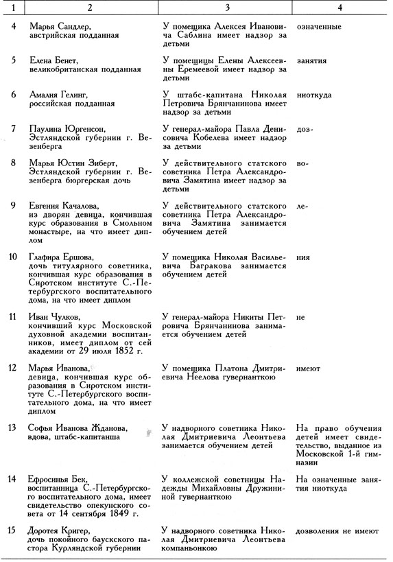 Список проживавших в г. Вологде домашних учителей и воспитателей[1], составленный городской полицией для представления губернатору И. В. Романусу