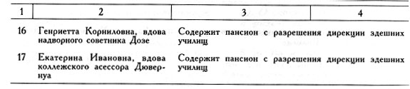 Содержимый в городе Вологде женою учителя гимназии г. Дозе частный пансион для благородных девиц по крайней неисправности родителей при взносе условленной за воспитание платы закрыт 1 августа. На месте пансиона г. Дозе открыла школу для благородных девиц по плану, утвержденному попечителем С.-Петербургского учебного округа 29 июня... За обучение каждой девицы назначено 200 руб. ассигнациями в год. В сем заведении, согласно с утвержденною начальством программою, преподаются предметы: закон Божий, языки (русский, французский и немецкий), начальные основания истории, географии и арифметики, чистописание, музыка, рисование, танцы и рукоделие. Всех девиц было 16...