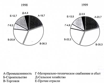 За 1999 год малыми предприятиями области выпущено товаров и услуг по всем видам деятельности на 5013 млн. рублей, в том числе по основному виду деятельности на 4418 млн. рублей. Выпуск продукции промышленными предприятиями составляет более трети общего объема, строительными - четвертая часть, торговли и общественного питания 10%, материально-технического снабжения и сбыта 4 процента.