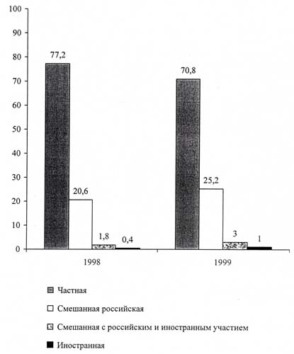 В 1999 году в области насчитывалось 4,9 тыс. малых предприятий. Преобладающей формой собственности является частная, ее доля в общем количестве малых предприятий составляет 90 процентов. Наибольшее число (35,3 %) предприятий сконцентрировано в торговле, 22,2 % - в строительстве, пятая часть - в промышленности.