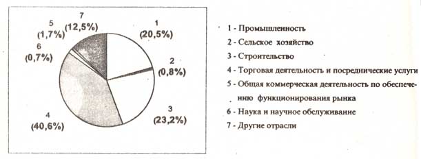 Предприятия торговли и посреднических услуг в области торговли занимают доминирующее положение в сфере малого предпринимательства. Этим видом деятельности занимались 41% хозяйствующих субъектов, на которых занята пятая часть работников малого бизнеса. Среди торгующих предприятий примерно 45% занимаются оптовой и розничной торговлей, свыше 50% - посредническими услугами при купле-продаже товаров народного потребления, 4% действуют в сфере общественного питания. На этих предприятиях занято соответственно 68, 27 и 5 процентов от общей численности работящих в малом секторе этой отрасли.