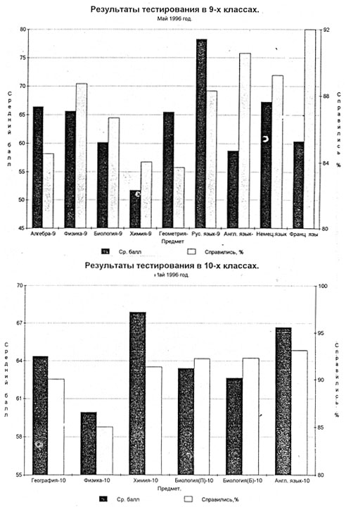 Учитывая желание организаторов образования, согласие учителей и учащихся в 1996 году проведено тестирование учащихся 9-х, 10-х, 11-х классов по алгебре, геометрии, физике, химии, биологии, географии, русскому, английскому, немецкому, французскому языкам. В тестировании принимали участие школьники из всех районов области.