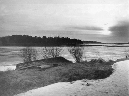 Остановившись, смотрит в полынью.