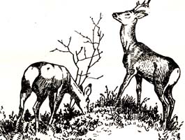 Косуля предпочитает селиться в лесных угодьях с полянами, с открытыми пространствами, покрытыми густой травой, с ручьями и небольшими речками. Основным кормом косуль служат различные виды трав, молодые листья и побеги кустарников и лишайники. Лежки зимой они устраивают, выкапывая углубления в снегу, а летом ложатся на отдых в тенистых местах. В октябре – ноябре самцы сбрасывают старые рога. Через некоторое время у них начинают расти новые, которые окончательно отрастают в мае. Новые рога первоначально покрыты кожей, опушенной мехом. Наши наблюдения, проведенные в вольере Калининского пединститута, показали, что по мере приближения периода спаривания, самцы начинают обдирать эту кожу о стволы деревьев. Образовавшиеся раны кровоточат. Содрав с рогов кожу, самцы съедают ее и после этого приходят в сильное половое возбуждение. Они непрерывно бродят в поисках самок. Спаривание у косуль происходит осенью. Беременность длится около 9 месяцев. Самка приносит обычно двух молодых. Через 6 – 7 дней после рождения они уже способны следовать за матерью. Половой зрелости молодые достигают на втором году жизни. Главным врагом косуль является волк.