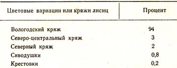 Как уже говорилось в предыдущей главе, на территории области встречаются лисицы нескольких цветовых вариаций или кряжей. При этом различные кряжи имеют различное значение в пушных заготовках, что хорошо иллюстрируется следующей таблицей.