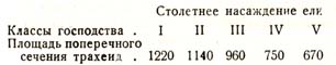 Тот же автор обнаружил при этом, что отношение толстостенной части годичного кольца, осенней, к тонкостенной или весенней, за последние 50 лет у ели, притом у разных классов господства, выразилось следующими величинами: