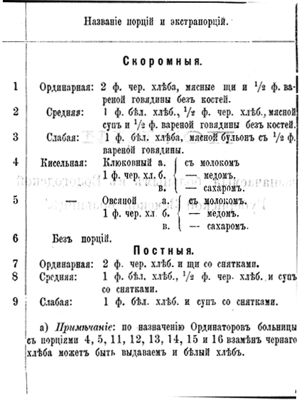 Порции, назначаемые больным в Вологодской Губернской Земской больнице.