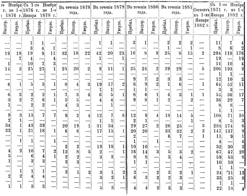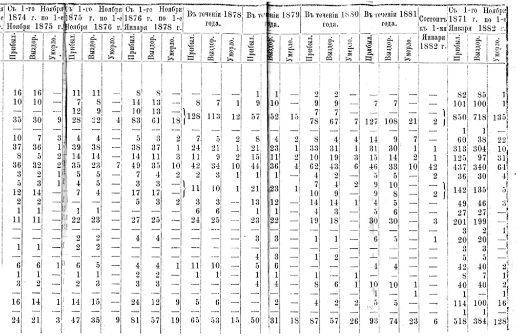 Уменьшение числа амбулаторных больных с 1877 года по 1880 год отчается объясняется тем, что в это время прием больных производился только по вечерам.