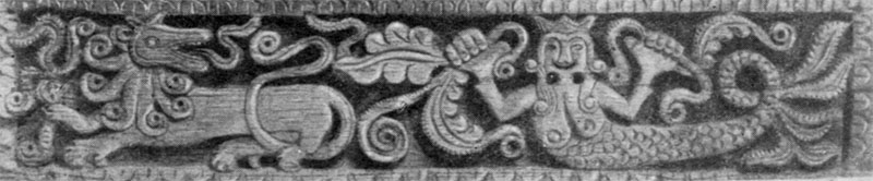 драконом. Плоскорельефная резьба на кости. Новгород,