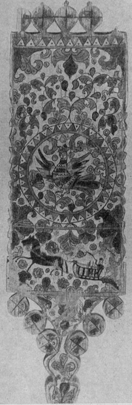 прялка с сирином и поездкой на санях. Район Северной Двины. (Пермогорье).