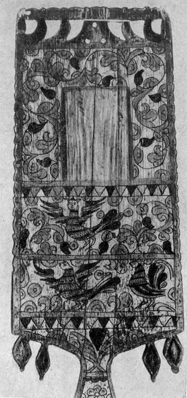 прялка с рисунками "палат", каретой и животными. Район Северной Двины