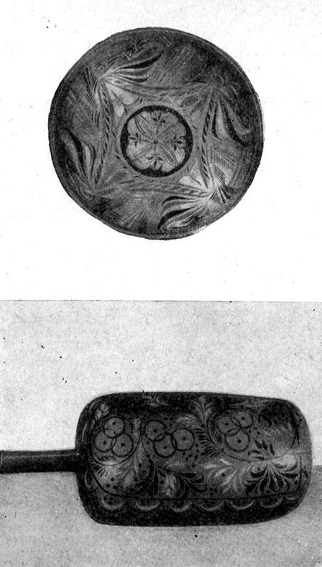 роспись на миске. Работа Ф. А. Бедина. С. Новопокровское, Ковернинский