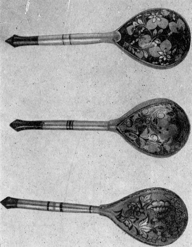 роспись на ложках (слева направо: 1 и 2 - г. Семенов, 3-я - Ковернинский