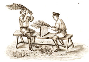Сортировка льняных стеблей.