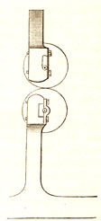 Для отделения семян в крупных хозяйствах служит особо предназначенная для сего машина (фиг. 5 — 6), состоящая, как показывает нам чертеж, из двух чугунных валов, из которых нижний вращается посредством шкива с набросанным на него ремнем; этот же нижний вал можно вращать также и рукою, посредством рычага; что же касается второго, т. е. верхнего вала, то последний вращается произвольно по направлению и ходу льна.