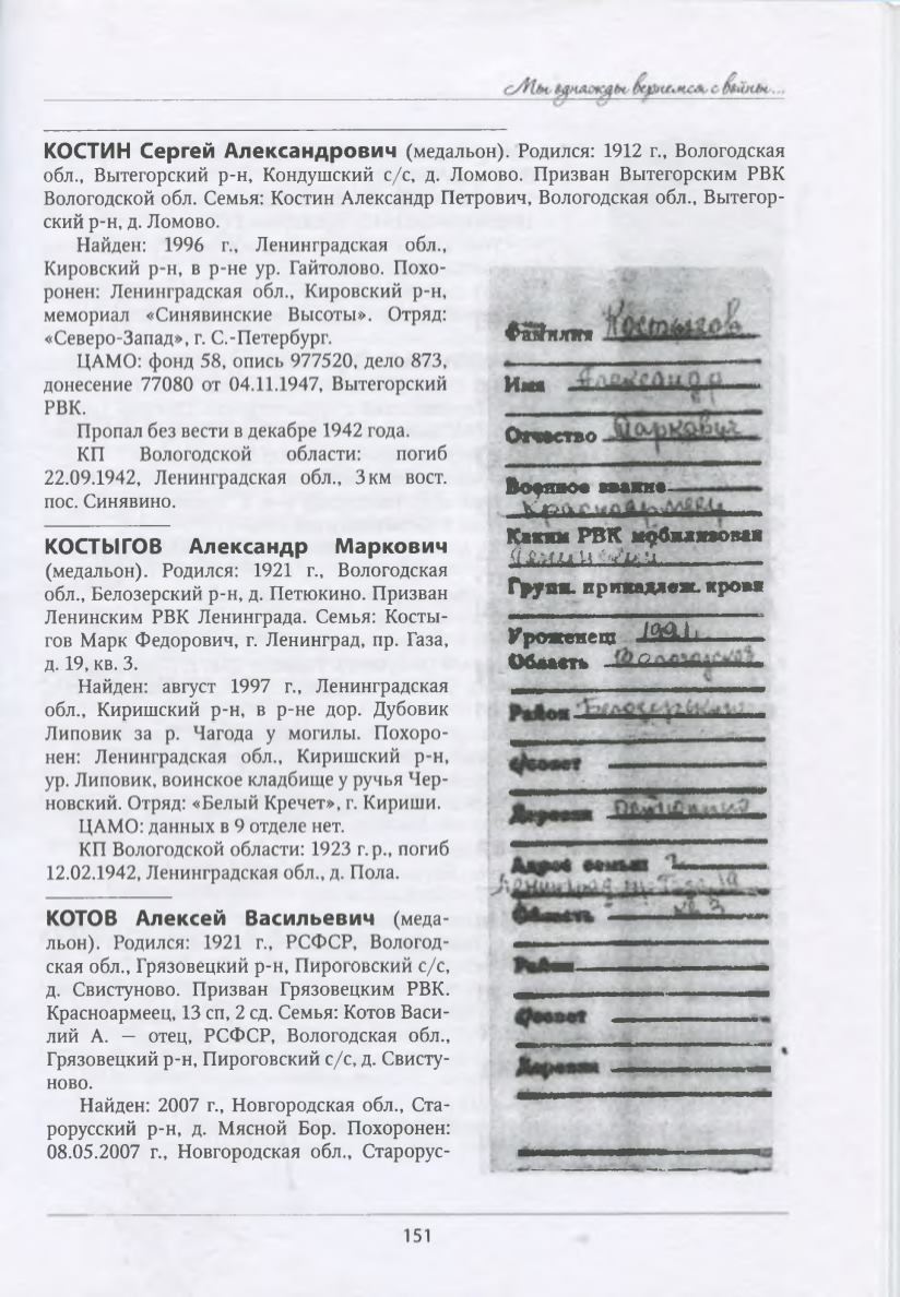Вологодской обл. Семья: Костин Александр Петрович, Вологодская обл., Вытегор