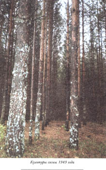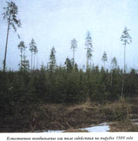 Понятно, что встретить какое-либо естественное лесовозобновление среди этой обгорелой груды валежника ранее 10 лет невозможно... Лет через 15 картина меняется к лучшему: показывается осина или береза, т. е. то, что здесь совсем непригодно. Хвойный же лес появляется очень редко. Встречаются очень часто места, на которых лес срублен более 20 лет, но никакого лесовозобновления не последовало».