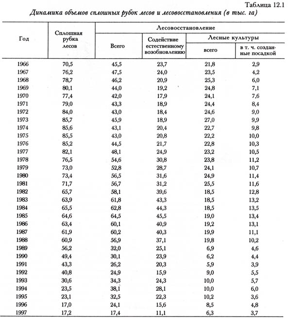 За последнее десятилетие объемы восстановительных работ неуклонно сокращались пропорционально падению объемов сплошных рубок леса. Причины такого положения на поверхности: реформирование народного хозяйства страны привело к резкому снижению спроса на древесину, что отразилось и на объемах ее заготовки и ле-совосстановления.