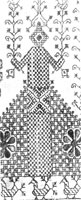 Крестьянская перевить дает многочисленные примеры большой художественной выразительности. Особенно интересную стилистическую и иконографическую страницу женского крестьянского искусства показывают сквозные вышивки Вологодской губернии (главным образом подзоры простыней). Эти вышивки не имеют никакой расцветки и представляют один из технических вариантов перевити, когда сетчатый фон исполняется выдергиванием нитей лишь между орнаментом и фигурами, оставленными в цельном полотне и расшитыми разновидными узорами, называемыми «полотнянками». Этот прием дает возможность применять в композициях разнообразные и сложные фигурные очертания. Более древние из этих вышивок имеют довольно близкую орнаментальную связь с северными красными вышивками; в своем особом художественном направлении разрешают они единую древнюю орнаментальную тему народной вышивки - культовые мотивы. Но древние элементы здесь чаще нарушаются, раздвигаются, теряют свою чистоту и строгость и, наконец, уступают первое место новым бытовым мотивам, современным самой вышивке. Обычная геометризация часто наблюдается здесь в несколько своеобразном складе: вместо четких, прямых и заостренных линий красной вышивки здесь развиваются контуры более мягкие, сглаженные, волнистые.
