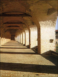 Однако этой крепости, как и многим другим, возведенным в XVII столетии, не суждено было увидеть под своими стенами неприятеля. Грандиозные башни и мощные стены, величественные и суровые, ни разу не услышали зова военных труб и клича врагов. Они застыли в гордом молчании, лишь напоминая о былом далеком времени, когда за каменной оградой и подле нее кипела жизнь, плыл над округой колокольный звон, безвозвратно отмеряя уходящее время. Овеянные романтикой прошлого, величественные стены и башни предстают перед нами, как сказочный град, бесподобное соединение техники и красоты.