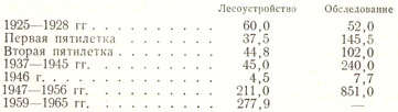 За годы Советской власти работы по лесоустройству и обследованию лесов выполнялись в следующих объемах (млн. га):