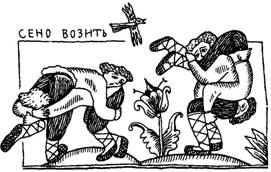 Еще одна забава - называется «сено возить» Двое станут друг против дружки, один нагнется, а его товарищ ему на шею усядется и наклонится вперед. Оба обхватятся руками покрепче, а потом тот, кто внизу оказался, начинает выпрямляться, пока верхний - «копна» - от земли не оторвется. Потом снова вперед наклоняется, а «копна» начинает выпрямляться и «возчика» за собой увлекает. Так и куликаются, пока «возчик» не обессилеет и на траву не кувыркнется. Тогда сверху на него все кучей навалятся, кричат: «Груда мала! Груда мала!» - только писк да визг, да смех эхом по лесу раздаются.