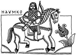 Услыхал это имя атаман разбойничий, кровь у него с лица спала, бел он стал да бледен, что твое полотно. «Чем докажешь, что Наумко ты, а не самозванец? Коли врешь, прикажу тебя копьями истыкать, саблями иссечь да на сосну повесить воронью на съеденье! Покажи-ко перстень заветный с птицей диковинной, что Наумка от царя заморского в дар получил, когда со своей дружиной за море хаживал». А про перстень тот слух шел, будто он Наумке силу дает, и пока тот перстень при нем - ни стрела Наумку не возьмет каленая, ни сабля вострая.