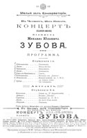«Тангейзер». Все произведения очень понравились, т. к. исполнение было неплохое. А свой сольный концерт М.Ю. Зубов дал для Глинковского кружка, где исполнил сочинения Чайковского, Рубинштейна, Корелли, Листа и два собственных произведения. На вечере в Дворянском собрании в память Льва Толстого играл «Похоронный марш» Бетховена [3].