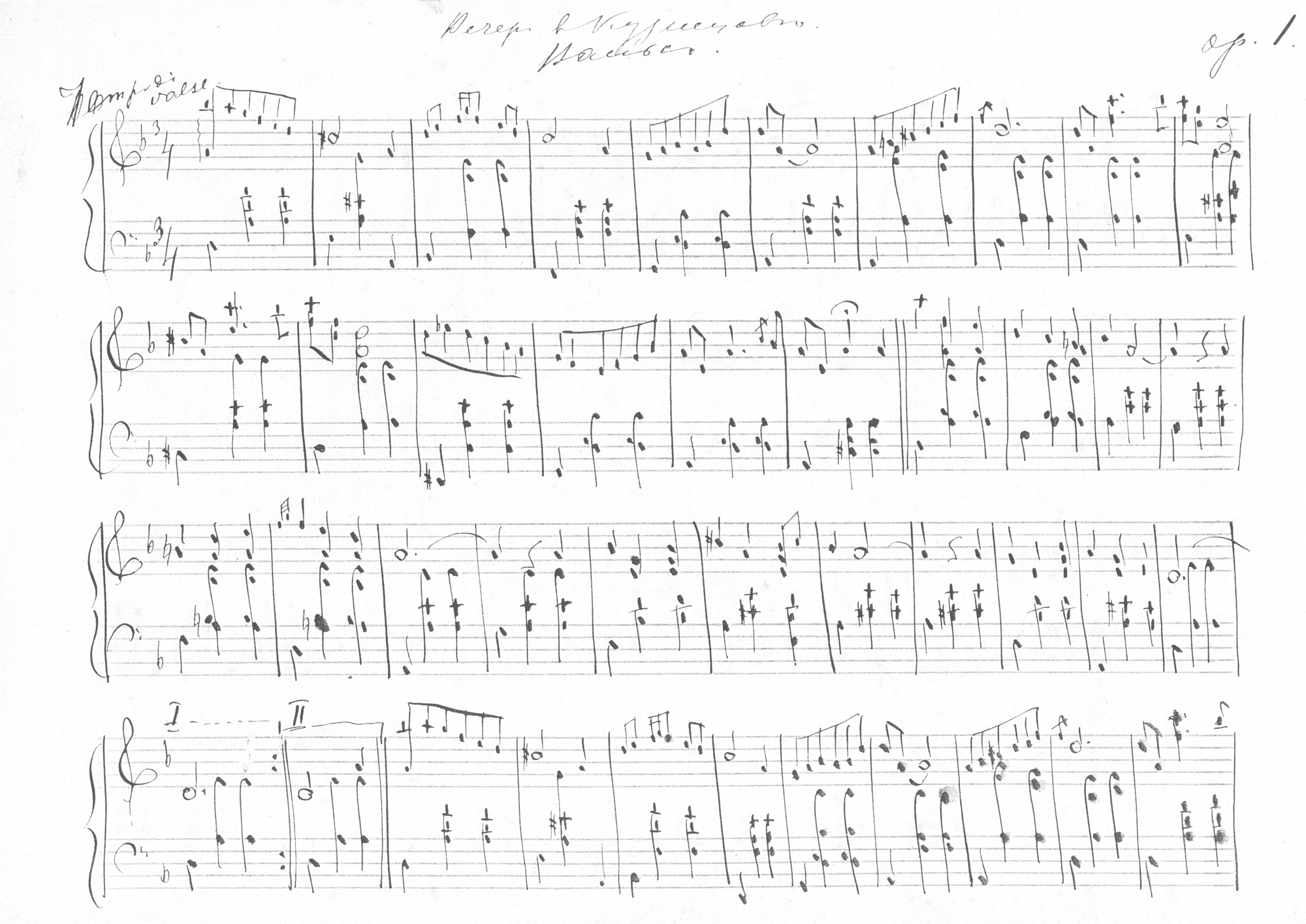 Страница нот, написанных Мишей Зубовым в имении Кузнецово (из семейного архива автора) |