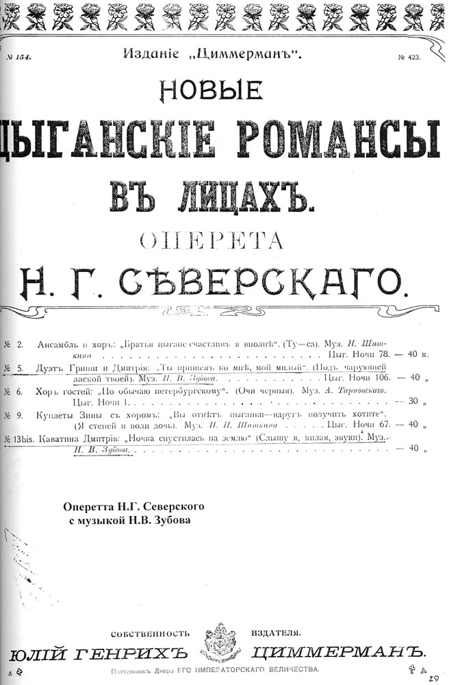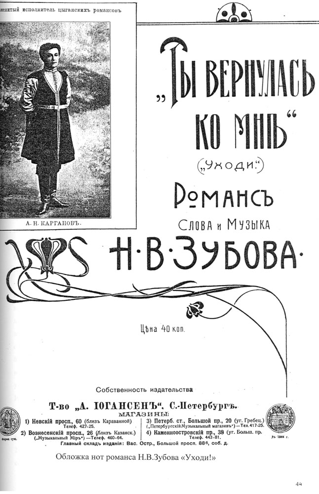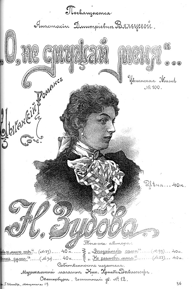 Романсы Н. Зубова, посвященные А. Вяльцевой