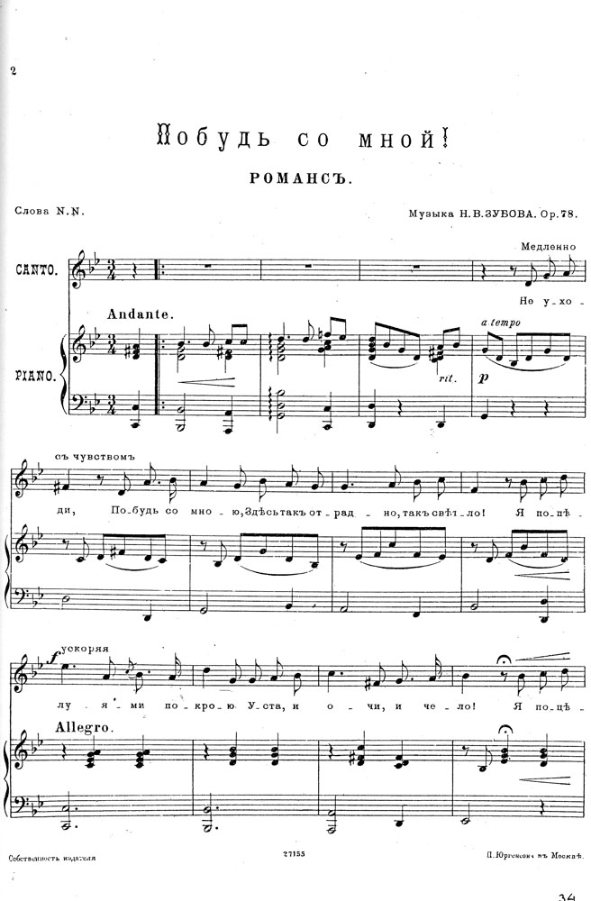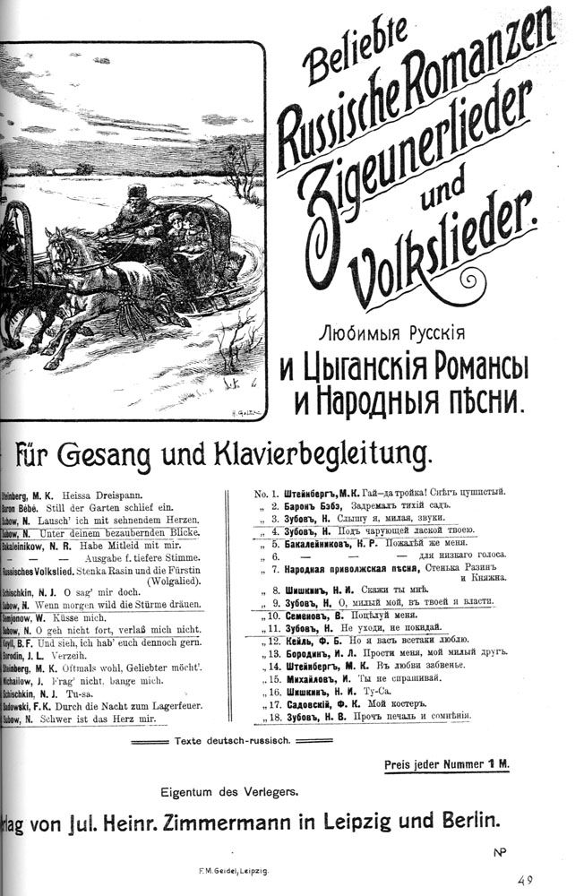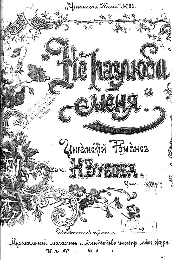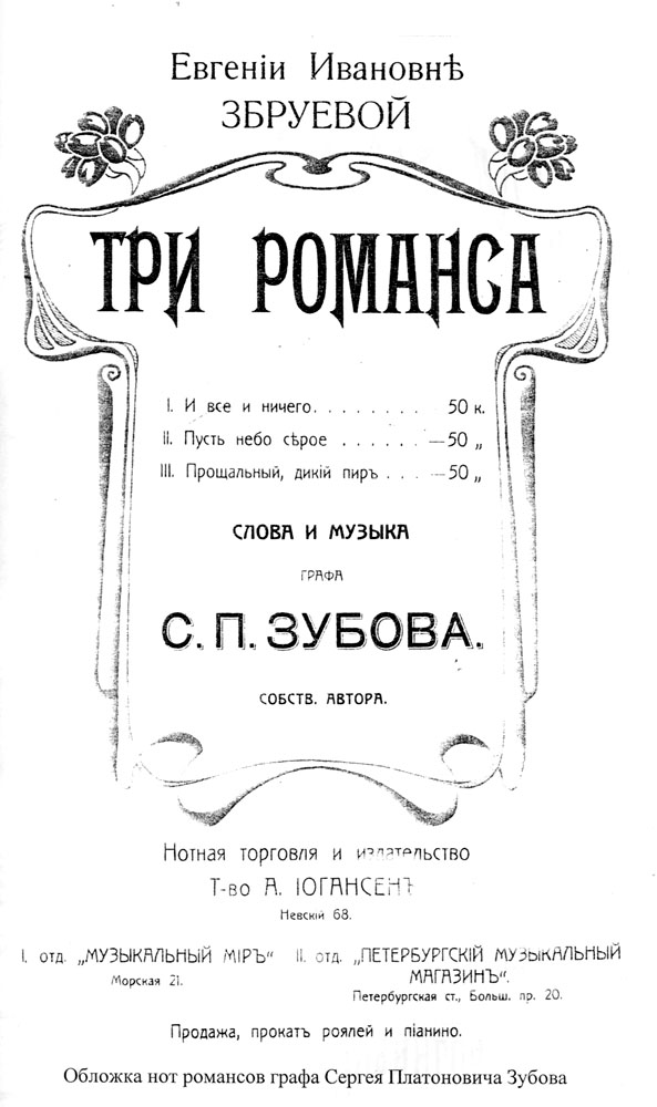 18. Обложка нот одного из романсов Н.В. Зубова, посвященного А.