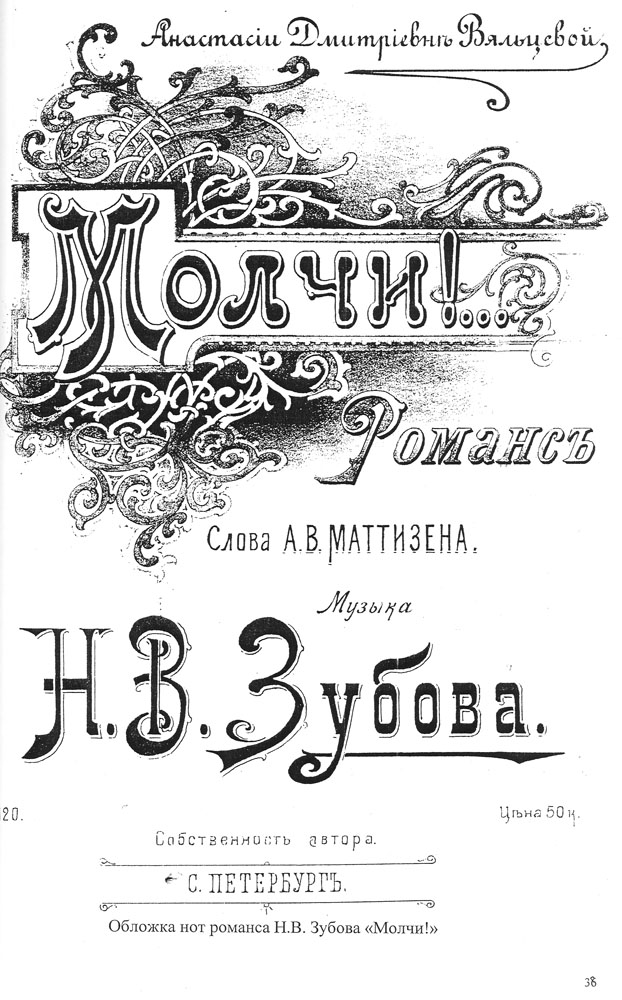 19. Обложка нот романса Н.В. Зубова «Молчи!»