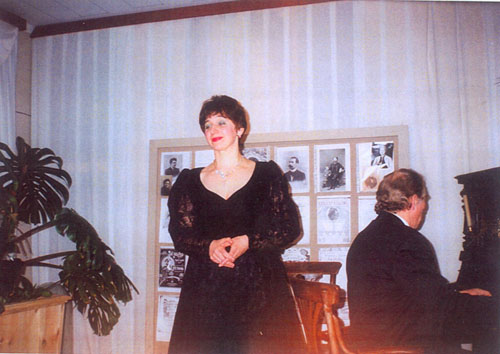 26. Открытие музыкальной гостиной в филиале Вологодского музея-заповедника «Мир забытых вещей», февраль 1997 года. Поет заслуженная артистка России Татьяна Скрипникова