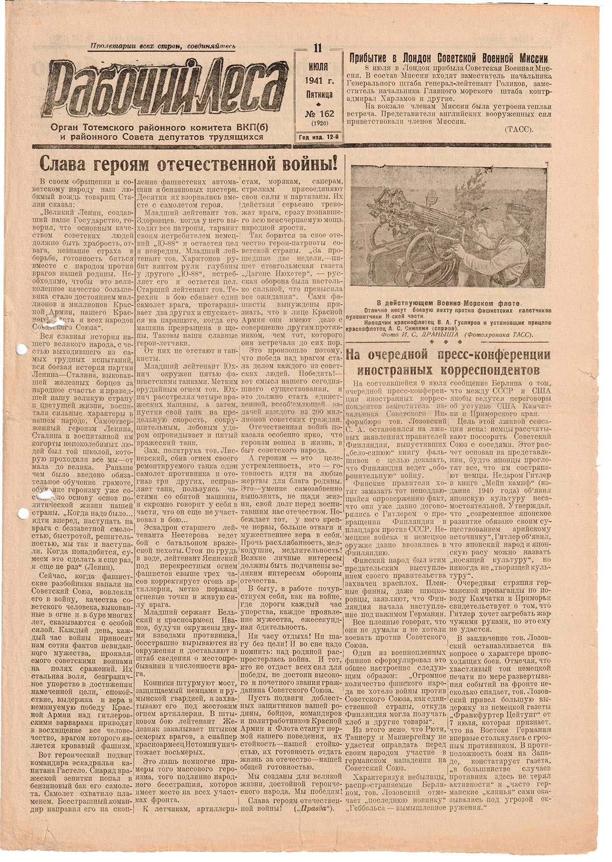 Отсутствуют номера за март 1941 г.